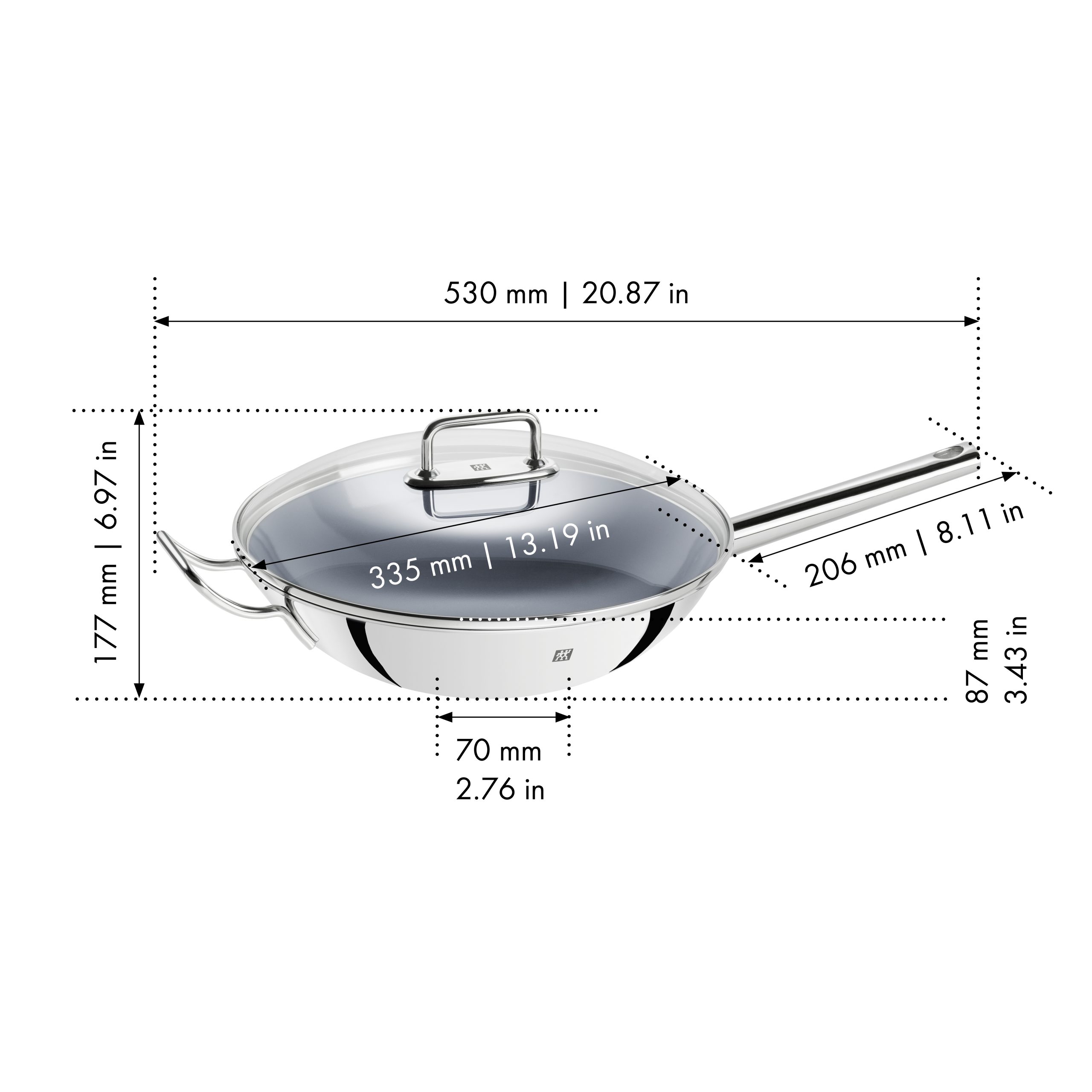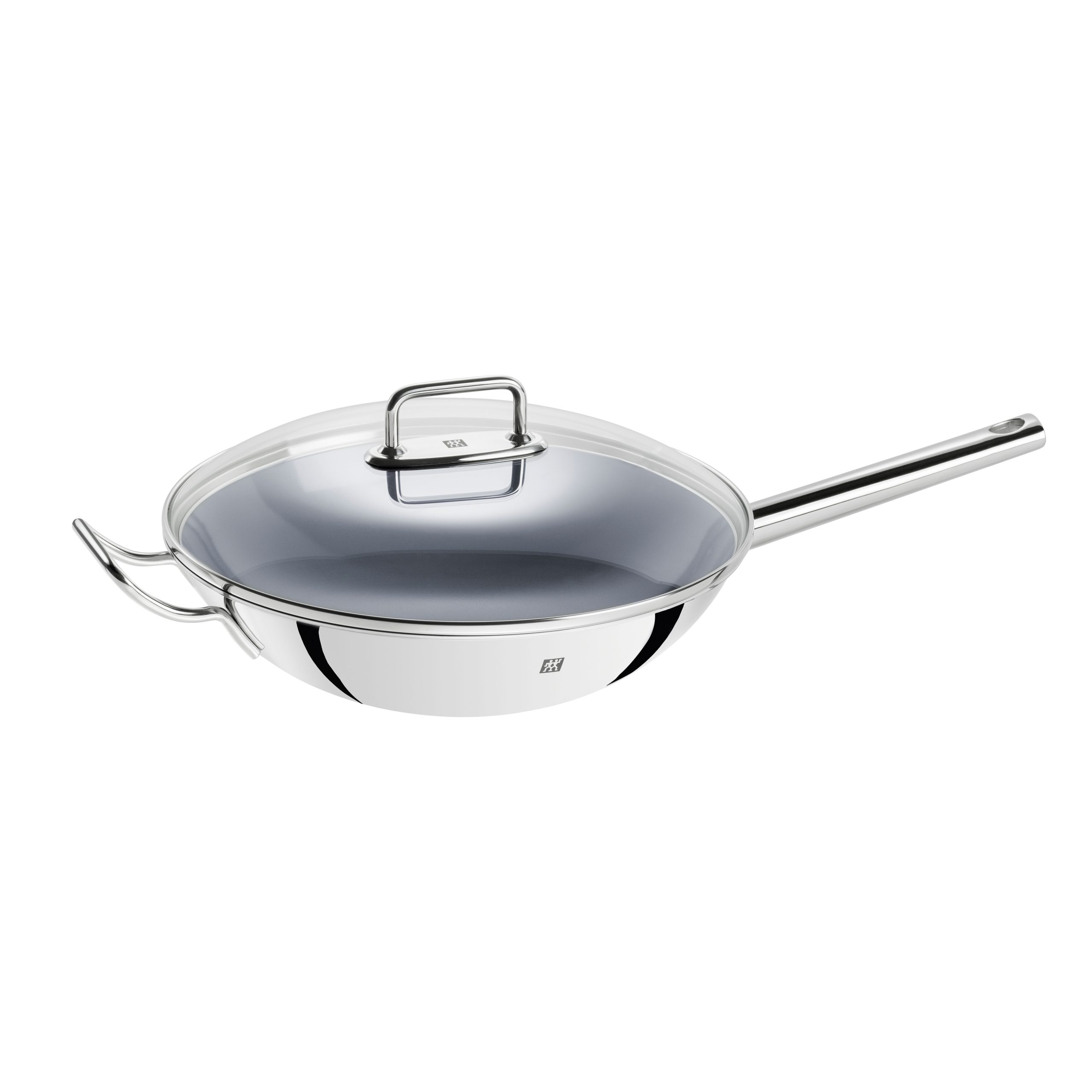 A wok is popular not just among lovers of Asian cuisine for preparing delicious dishes. Cooking enthusiasts and professional chefs alike appreciate the SIGMA Clad base technology that evenly distributes heat up to the rim of this wok from the ZWILLING® PLUS series – a great advantage when frying and turning. The ceramic non-stick coating is extremely scratch-resistant. The three-layer base, which consists of a high-quality aluminum core between two layers of stainless steel, ensures ideal distribution and storage of the heat. The glass lid aids energy-efficient cooking while allowing you to keep an eye on your food.